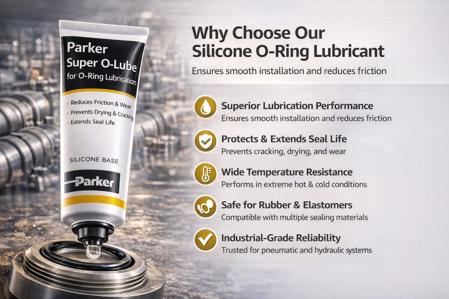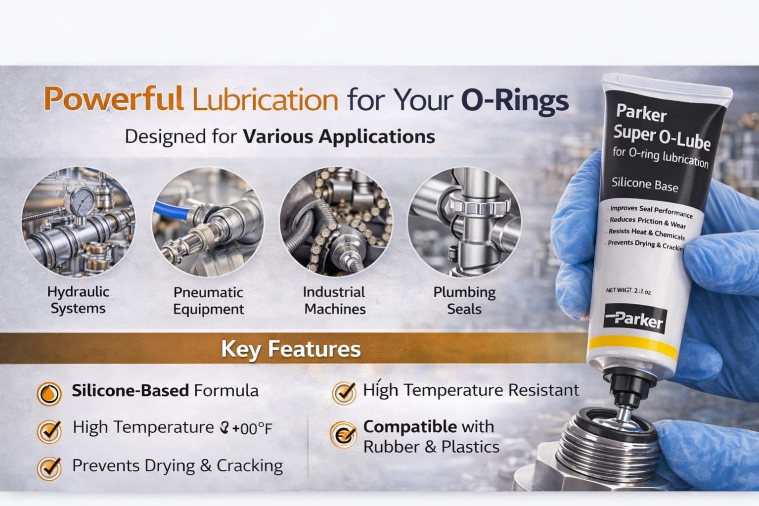 Parker Super O-Lube 884-2 ek high-performance synthetic grease hai jo O-rings, seals aur rubber components ke lubrication ke liye specially design kiya gaya hai. Yeh product friction ko reduce karta hai, wear & tear ko minimize karta hai aur sealing life ko extend karta hai. Iska non-toxic aur water-resistant formula ise industrial, automotive aur household applications ke liye perfect banata hai.